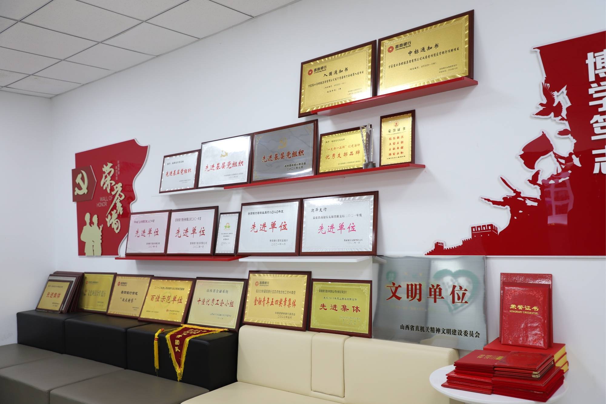 晋商银行迎泽支行的荣誉墙(实习生 甘泉 摄)