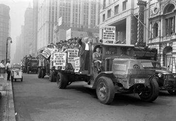 当然,美国大部分企业家都不愿实行五天工作制,但打工人们愿意,于是在当时工会的组织下,爆发了不少大规模的游行抗议活动。