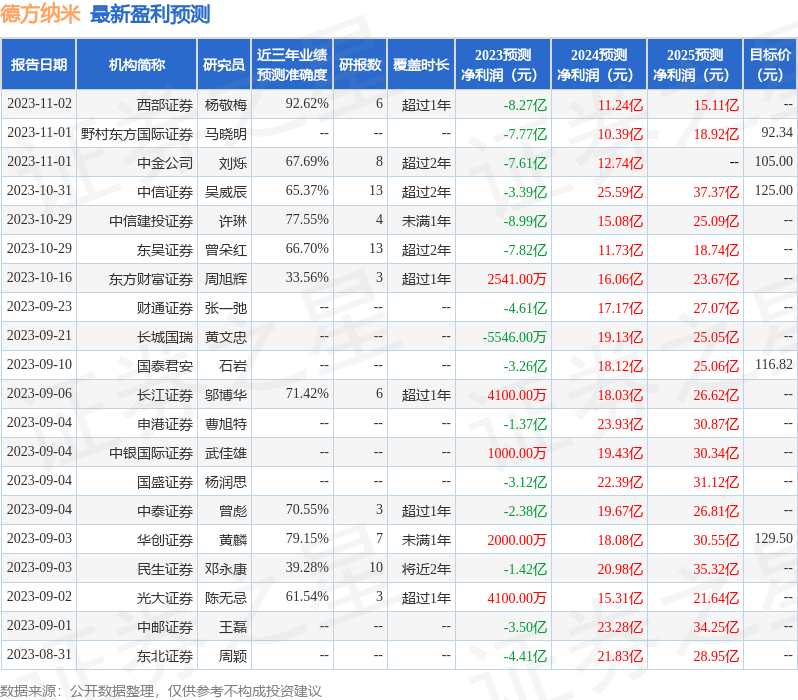 以下是详细的盈利预测信息: