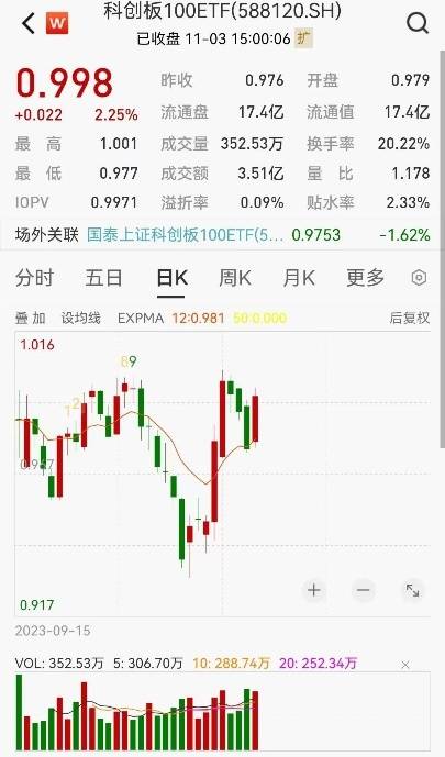 科创板100ETF(588120)11月3日收涨2.25%,近十日涨4.28%,同期科创板50指数反弹1.57%。