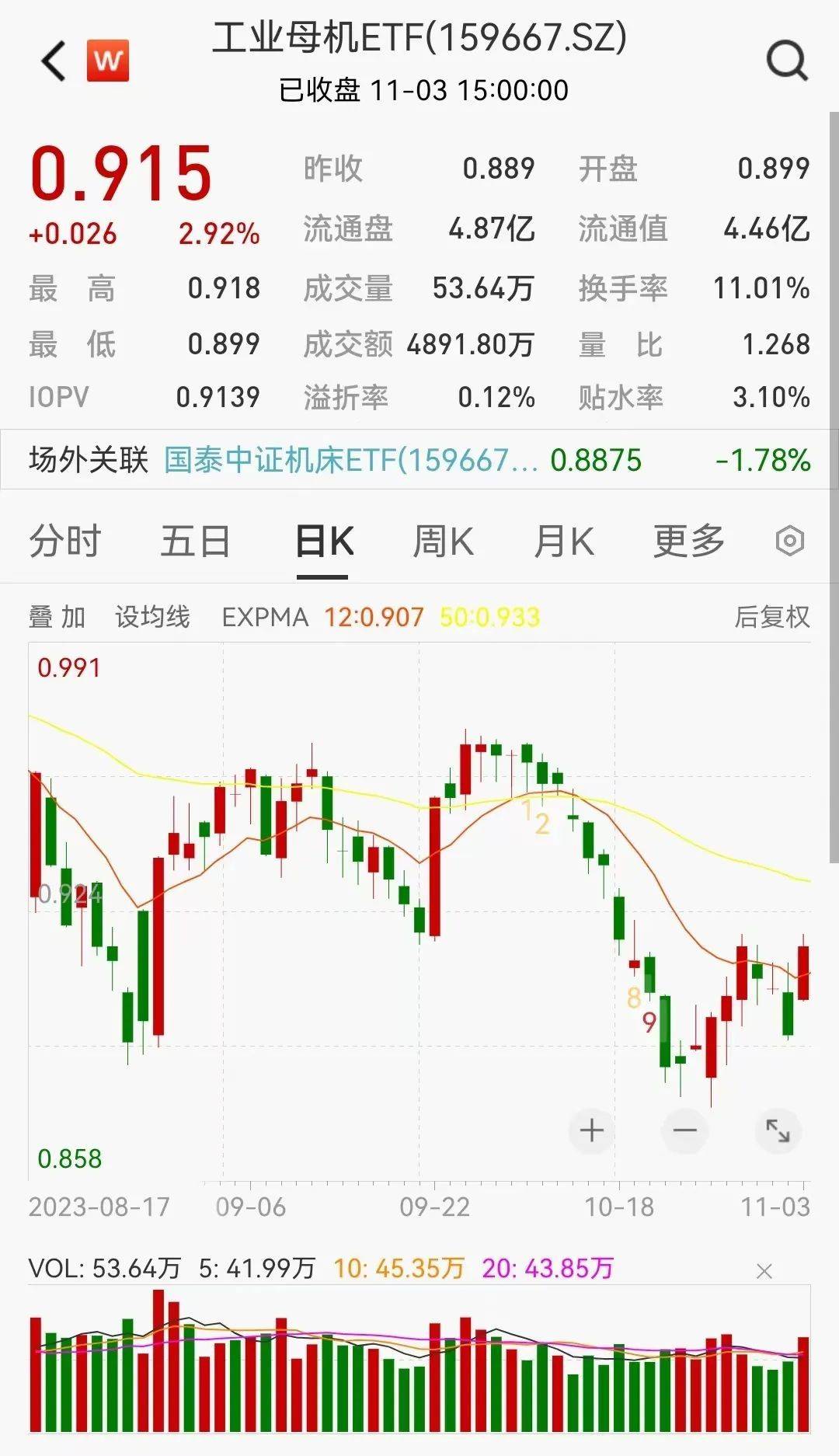 工业母机板块11月3日强势上行,工业母机ETF(159667)涨2.92%。