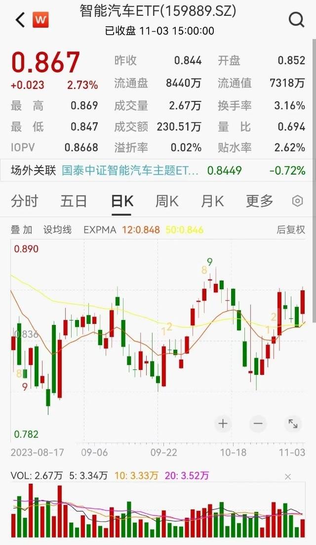 智能汽车板块11月3日也表现亮眼,智能汽车ETF(159889)上涨2.73%。