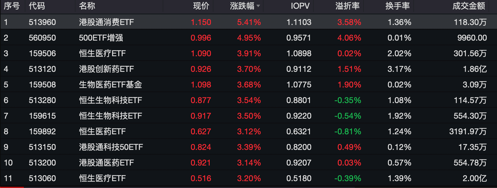 原标题:港股医药ETF集体领涨