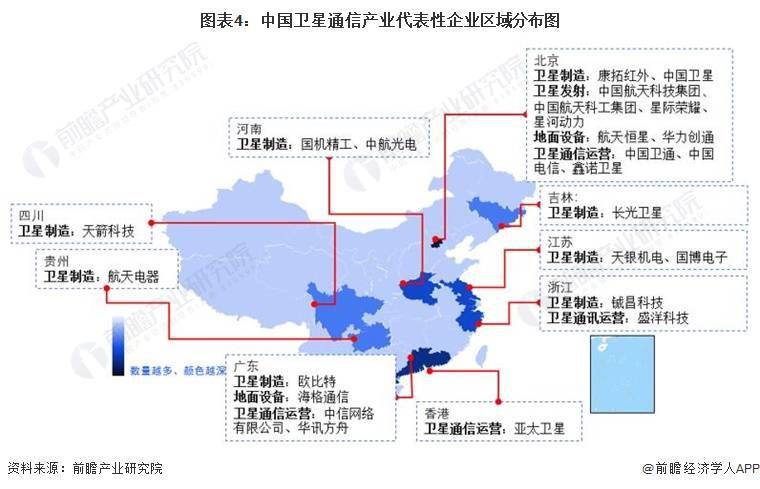 从中国卫星通信产业链重点企业分布情况来看,北京是产业链众多企业布局的关键省市,聚集了大量的产业链配套企业,广东、浙江、江苏、河南等地具备一定数量的卫星通信企业;此外,四川、贵州、吉林等多个省市均有相关企业。北京市产业聚集效应最好,包括上游卫星制造、卫星发射、地面设备,中游卫星通信运营商均布局在北京。