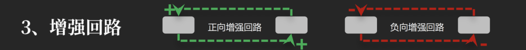 两条“增强”,或者两条“减弱”的因果链,首尾相连,形成一条“回路”,就是“增强回路”。