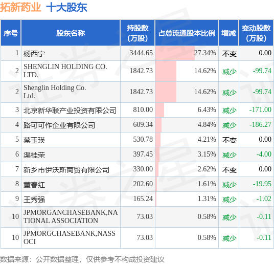 根据拓新药业2023年一季报公布的十大股东详情如下: