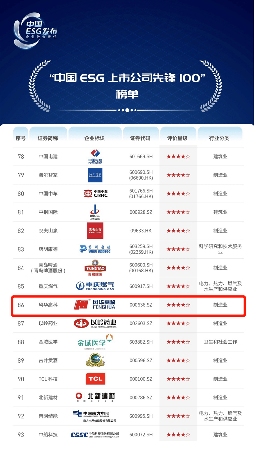 近日,中央广播电视总台财经节目中心联合国务院国资委、全国工商联、中国社科院经济研究所,中国企业改革与发展研究会等权威机构部门,推出贯穿全年的“中国 ESG(企业社会责任)发布”暨盛典项目,着力构建中国特色ESG评价体系,正式发布《年度ESG行动报告》。广晟集团控股上市公司风华高科脱颖而出,入选“中国ESG上市公司先锋100”榜单。