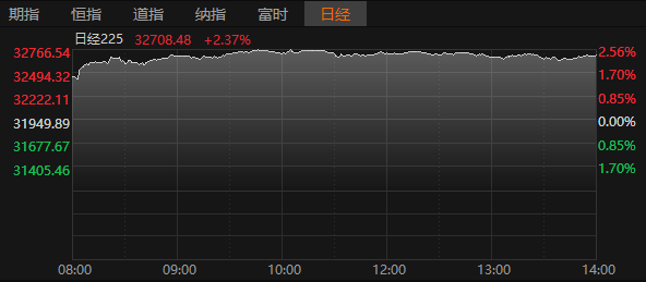 上证报中国证券网讯 据Choice金融终端数据,11月6日,日经225指数收盘涨2.37%,报32708.48点。