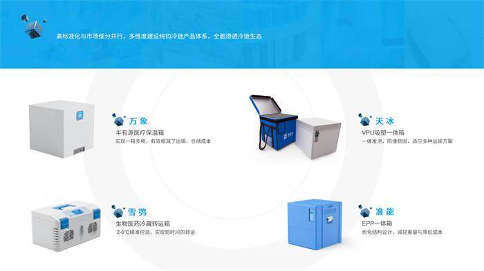 在冷链业务方面,目前的厂商主要以多场景发展策略为主,存在型号和客户需求差异化较强的问题,导致客户的采购种类和定制化程度较高,难以实现规模效应,不利于企业的长期发展。其中,医药行业中冷链业务由于行业监管对物流过程与存储的质量控制要求严格,因此在技术性价比和安全稳定性等方面要求更高、更连续、更复杂,纯钧充分理解医药行业的精密控制和全程质量控制要求,着力发展底层材料创新突破,自主研发多款基于相变材料的高性能冷链温控运输箱,结合云平台、物联网等技术,实现长效无源精准控温,为医药、第三方物流等企业提供冷链运输一站式解决方案。纯钧基于对容积、运输时间等参数的量化统计与标准化,精选出4款箱型、不同规格的医药冷链温控箱供客户选择,覆盖冷链运输场景达90%以上。纯钧的产品目前和国药集团、上海医药等重点国资药企展开合作。