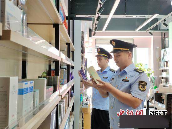 衢州市市场监管工作人员在化妆品经营企业开展检查。姜燕清 摄