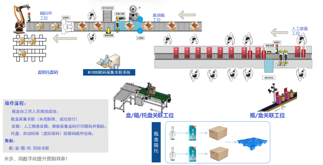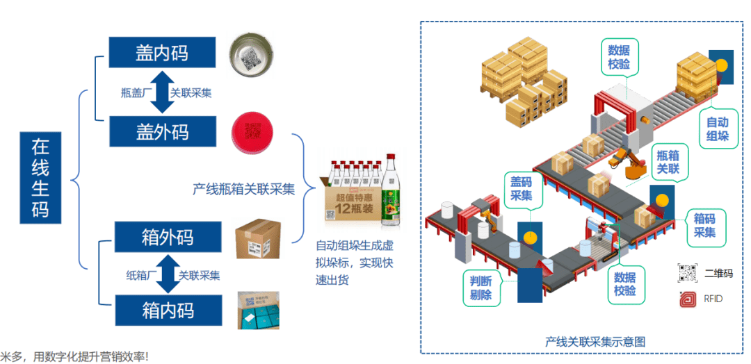 需要注意的是,如果白酒企业原本的产线作业模式无法满足五码合一作业需求,就需要进行产线改造,从而帮助白酒企业提升效率、保证精确度等,让白酒企业的营销成本得以合理利用。