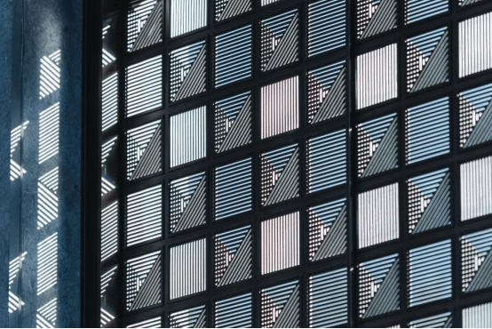 厅堂和轩堂,也在这番赏景过程中,毫不突兀地依次出现。前者还原出孔子树下讲学的场景,后者则用金属编织的卷帘搭配青绿色彩釉玻璃,构建出一个品茗厅琴的空间。这一切来得如此自然、连贯,富有节奏和层次,把园林艺术的本质抓得入木三分。