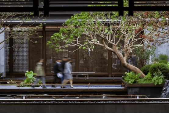 与黑山石对望的朴树,造价就接近百万元。就连其他的绿化树木,也是园林师跑遍了全国九个省严选出来的,光是每一棵的搬运成本就高达5000 元。
