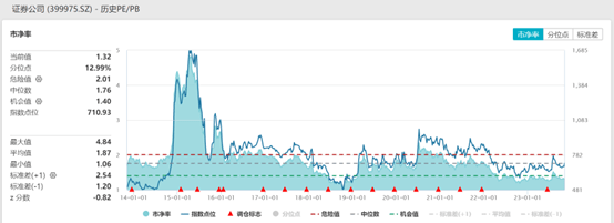 证券板块当前估值较低,证券公司指数PB估值为1.32倍,处于十年以来12.99%位置,为历史较低水平。考虑到证券板块在融资服务经济的职能、以及财富管理促进内循环的作用,后续在流动性相对宽松及资本市场改革政策红利下,证券板块可能有较强的估值修复动力及修复弹性。