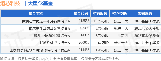 根据2023基金Q3季报公募基金重仓股数据,重仓该股的公募基金共5家,其中持有数量最多的公募基金为信澳汇智优选一年持有期混合A。信澳汇智优选一年持有期混合A目前规模为1.94亿元,最新净值0.8477(11月3日),较上一交易日上涨2.84%。该公募基金现任基金经理为朱然。朱然在任的基金产品包括:信澳转型创新股票A,管理时间为2021年12月20日至今,期间收益率为-35.7%;信澳智选先锋一年持有期混合A,管理时间为2022年6月14日至今,期间收益率为-26.65%;信澳匠心臻选两年持有期混合,管理时间为2022年8月16日至今,期间收益率为-38.52%;