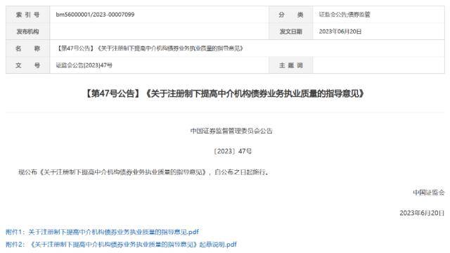 去年11月底向社会征求意见半年多后,今年6月21日,证监会正式发布《关于深化债券注册制改革的指导意见》以及《关于注册制下提高中介机构债券业务执业质量的指导意见》,意味着债券注册制改革全面落地。股债市场均进入注册制时代。