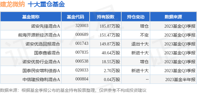 根据2023基金Q3季报公募基金重仓股数据,重仓该股的公募基金共6家,其中持有数量最多的公募基金为诺安先锋混合A。诺安先锋混合A目前规模为41.85亿元,最新净值2.556(11月3日),较上一交易日上涨1.3%,近一年下跌6.63%。该公募基金现任基金经理为杨谷。杨谷在任的基金产品包括:诺安优势行业混合A,管理时间为2023年10月21日至今,期间收益率为2.18%;诺安优选回报混合,管理时间为2023年10月21日至今,期间收益率为1.68%;诺安精选回报混合,管理时间为2023年10月21日至今,期间收益率为2.4%。