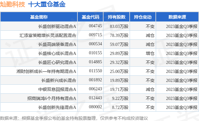 重仓灿勤科技的前十大公募基金请见下表: