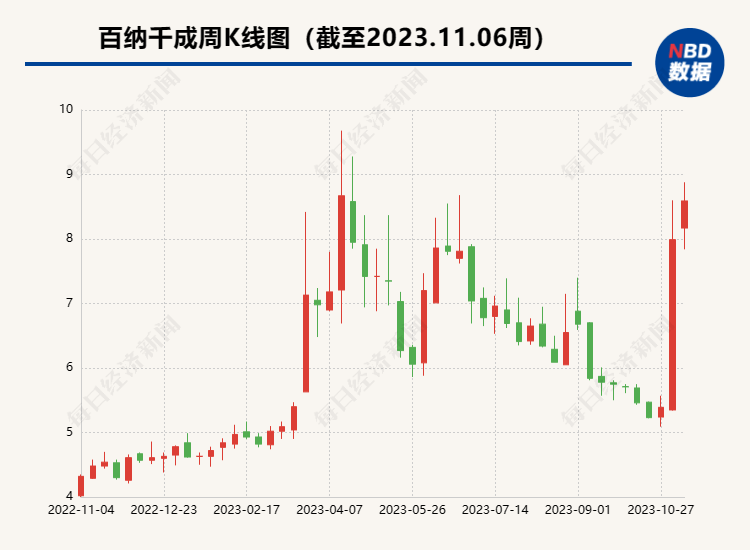值得一提的是,《完蛋!我被美女包围了!》游戏大火,也让百纳千成在资本市场上获得关注。这款游戏人气角色扮演者钟晨瑶参演的电影《热搜》定档于12月1日全国上映,其背后出品方便是百纳千成,其股价在上周5个交易日内累计涨幅近50%。