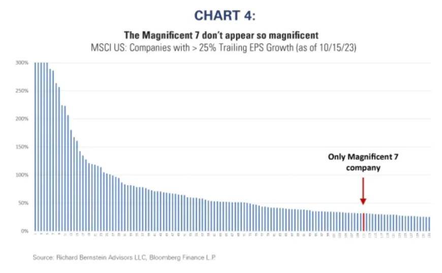 “整个全球股市真的只有7个增长故事吗?然后,第二种说法是,这七家公司真的是全球股市中增长最快的公司吗?这两个问题的答案都是否定的。”他写道。