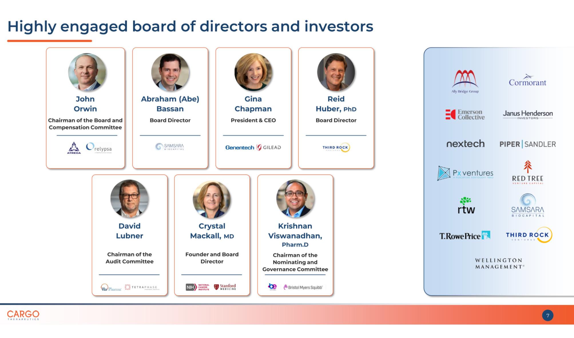 CARGO Therapeutics创办于2021年,致力于开放“下一代”细胞疗法,由斯坦福大学的细胞治疗学者Crystal Mackall联合创办,Crystal Mackall是斯坦福癌症细胞治疗中心创始主任、斯坦福帕克癌症免疫治疗研究所所长,曾在多家生物技术和制药公司担任科学顾问委员会。其他创始人也多是斯坦福大学医学院的学者。