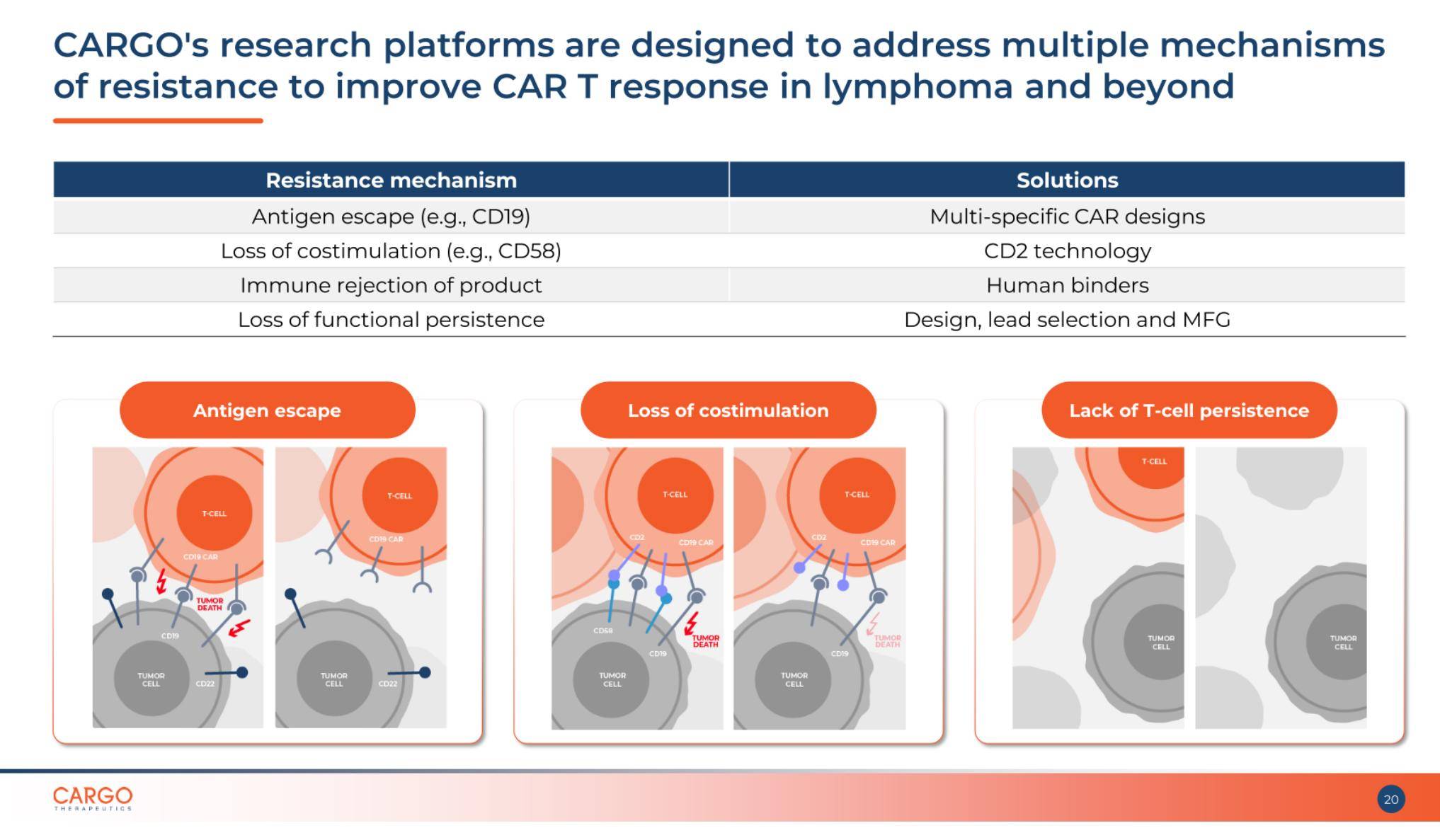 CARGO Therapeutics还在开发的管线Multi-Specific CAR-T旨在克服多种癌症耐药机制,通过多靶点的方法治疗多种恶性血液瘤。