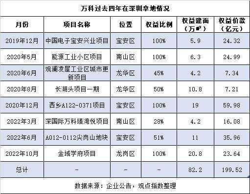 据观点新媒体不完全统计,过去5年内,万科于深圳新增商住项目仅有8个,包括至少4个城市更新项目,1个与深国际合作的项目,招拍挂项目占比较低;广州也仅有8个项目。