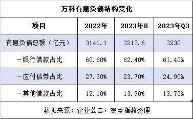 据观点新媒体对比,至9月底,万科有息负债较年初增长近89亿元至3230亿元;按融资对象看,应付债券(信用债)占比出现下降,作为替代方式,万科转而增加了银行借款及其他借款的融资,其中其它借款主要为险资债权计划的产品。