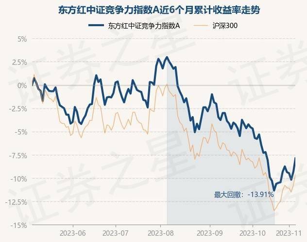 证券之星消息,11月3日,东方红中证竞争力指数A最新单位净值为1.0468元,累计净值为1.0468元,较前一交易日上涨0.95%。历史数据显示该基金近1个月下跌5.02%,近3个月下跌11.61%,近6个月下跌9.95%,近1年下跌6.97%。该基金近6个月的累计收益率走势如下图: