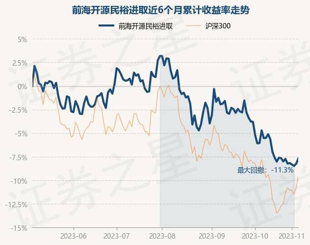 证券之星消息,11月3日,前海开源民裕进取最新单位净值为0.6991元,累计净值为0.6991元,较前一交易日上涨0.27%。历史数据显示该基金近1个月下跌4.62%,近3个月下跌10.84%,近6个月下跌9.0%,近1年下跌11.87%。该基金近6个月的累计收益率走势如下图: