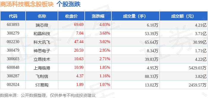 北向资金方面,当日商汤科技概念股板块北向资金持股市值为47.47亿元,减持1.67亿元。其中增持最多的是上海临港,增持了262.41万元。减持持最多的是科大讯飞,减持了1.58亿元。商汤科技概念股板块北向资金持股变动明细见下表: