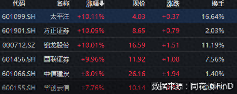 新政出台信心提振 券商股全线大涨、多只个股涨停