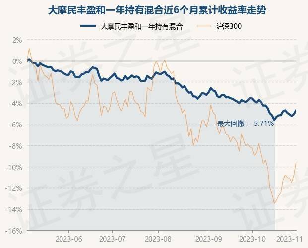 证券之星消息,11月6日,大摩民丰盈和一年持有混合最新单位净值为0.9238元,累计净值为0.9238元,较前一交易日上涨0.36%。历史数据显示该基金近1个月下跌1.2%,近3个月下跌3.68%,近6个月下跌4.71%,近1年下跌4.87%。该基金近6个月的累计收益率走势如下图: