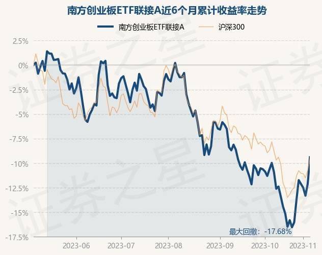 证券之星消息,11月6日,南方创业板ETF联接A最新单位净值为1.0315元,累计净值为1.0315元,较前一交易日上涨3.09%。历史数据显示该基金近1个月上涨1.36%,近3个月下跌9.58%,近6个月下跌9.35%,近1年下跌15.55%。该基金近6个月的累计收益率走势如下图: