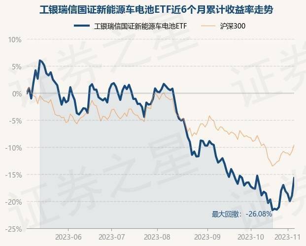 证券之星消息,11月6日,工银瑞信国证新能源车电池ETF最新单位净值为0.5461元,累计净值为0.5461元,较前一交易日上涨4.0%。历史数据显示该基金近1个月上涨0.96%,近3个月下跌17.07%,近6个月下跌15.63%,近1年下跌31.27%。该基金近6个月的累计收益率走势如下图: