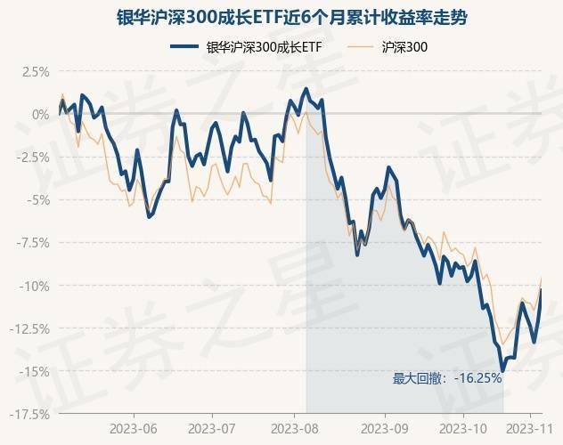 证券之星消息,11月6日,银华沪深300成长ETF最新单位净值为0.7869元,累计净值为0.7869元,较前一交易日上涨2.06%。历史数据显示该基金近1个月下跌1.43%,近3个月下跌11.6%,近6个月下跌10.36%,近1年下跌15.83%。该基金近6个月的累计收益率走势如下图:
