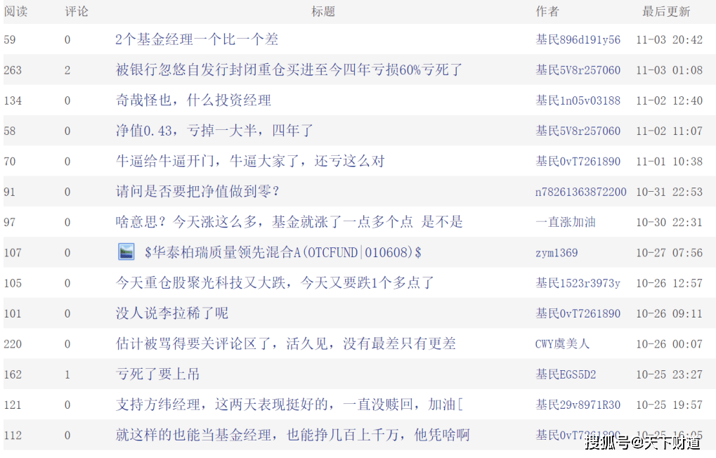 尽管如此,华泰柏瑞质量领先A累计近6成的净值亏损,还是让持有人伤痕累累。直到近期,在东方财富基金吧中,仍有不少投资人表达着不满。