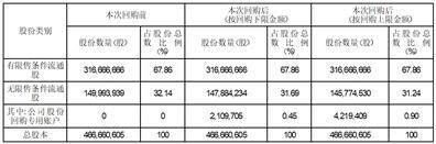 注:上表“本次回购前”股份数为截至2023年10月10日的总股本数据,上述变动情况暂未考虑其他因素影响,具体回购股份的数量以回购期满时实际回购的股份数量为准。