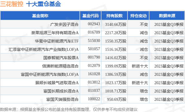 根据2023基金Q3季报公募基金重仓股数据,重仓该股的公募基金共342家,其中持有数量最多的公募基金为广发多因子混合。广发多因子混合目前规模为131.21亿元,最新净值3.0885(11月3日),较上一交易日上涨1.27%,近一年上涨1.31%。该公募基金现任基金经理为唐晓斌 杨冬。杨冬在任的基金产品包括:广发瑞誉一年持有期混合A,管理时间为2022年1月19日至今,期间收益率为-7.19%;广发价值领航一年持有混合A,管理时间为2022年6月2日至今,期间收益率为1.58%;广发东财大数据精选混合A,管理时间为2023年8月21日至今,期间收益率为-3.3%。唐晓斌在任的基金产品包括:广发多元新兴股票,管理时间为2020年3月2日至今,期间收益率为-25.96%;广发瑞锦一年定期开放混合,管理时间为2021年9月15日至今,期间收益率为-38.47%;广发瑞誉一年持有期混合A,管理时间为2022年1月19日至今,期间收益率为-7.19%。