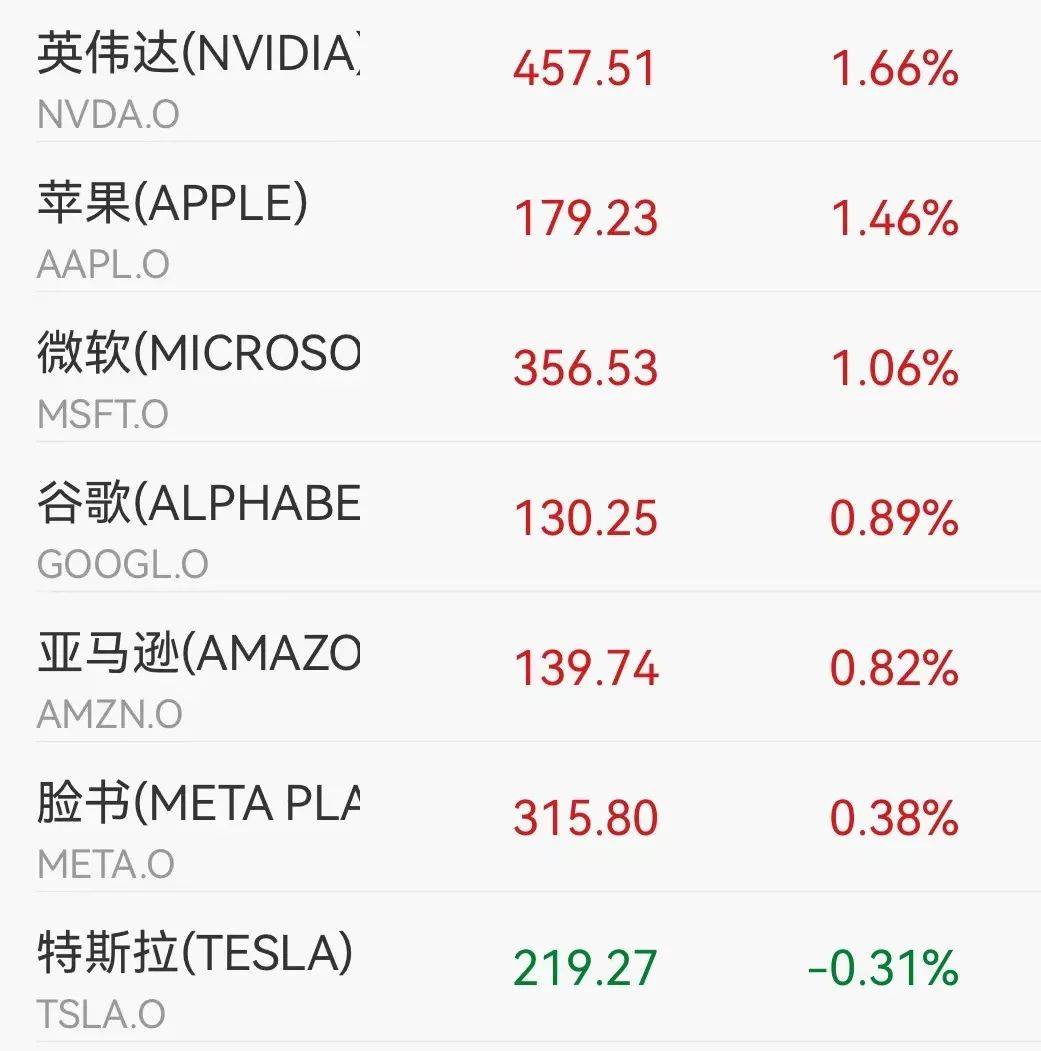 OpenAI开发者大会提振科技股,科技股集体上涨,苹果涨1.46%,亚马逊涨0.82%,奈飞涨0.55%,谷歌涨0.89%,脸书涨0.38%,微软涨1.06%。仅特斯拉微跌。