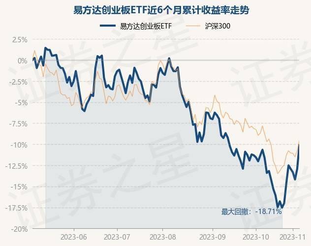 证券之星消息,11月6日,易方达创业板ETF最新单位净值为1.9801元,累计净值为2.2684元,较前一交易日上涨3.25%。历史数据显示该基金近1个月上涨1.37%,近3个月下跌10.3%,近6个月下跌10.11%,近1年下跌16.8%。该基金近6个月的累计收益率走势如下图: