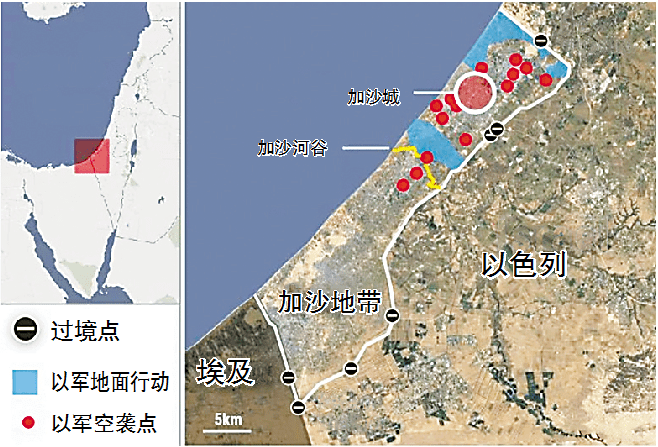 以色列国防军发言人哈加里5日称,以军当天从海上、陆地和空中发起对加沙地带的联合军事行动,将加沙地带“一分为二”。《以色列时报》援引哈加里的话说,以军部队已到达加沙地带海岸沿线并将该地区控制住。自当天起,加沙地带分为北部和南部两部分。以色列《耶路撒冷邮报》5日援引以国防军的消息称,预计以军将在未来48小时内大举进入加沙城。以国防军发言人阿德雷伊6日在社交媒体上表示,以色列于当天10时至14时再次开放南向的萨拉赫丁公路,供加沙地带平民向南部撤离。据《以色列时报》报道,目前约有80万平民撤离至加沙地带南部。