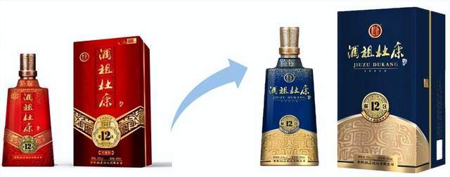 二、包装升级。对比升级前后的酒祖杜康12窖区,升级前的以红色为主,升级后的以蓝色为主,整体画面更加简洁,也使产品显得更加低调、典雅、尊贵。
