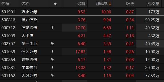 原标题:A股非银金融板块早盘拉升 方正证券、建元信托涨停