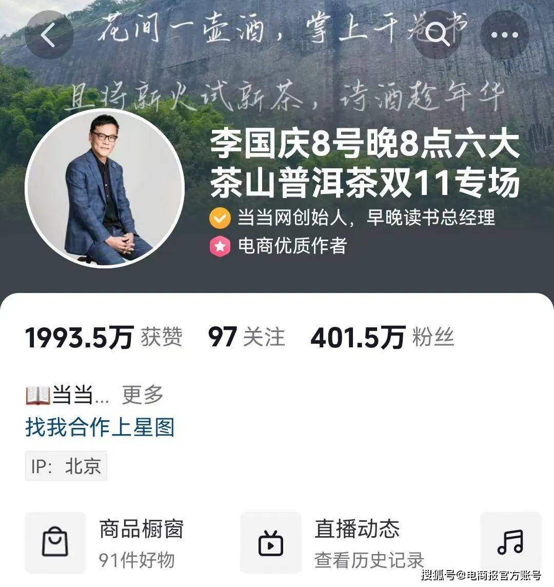 此次“李国庆诗酒趁年华”还登上了淘宝直播双11开门红达人直播间成交额TOP榜。李国庆在淘宝直播实现大卖,甚至比在抖音效果更好。