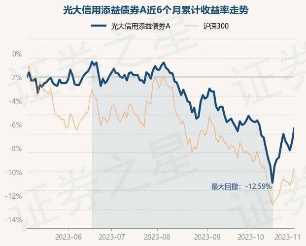 光大信用添益债券A为债券型-混合二级基金,根据最新一期基金季报显示,该基金资产配置:股票占净值比19.96%,债券占净值比93.19%,现金占净值比2.79%。基金十大重仓股如下: