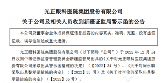 虽然光正眼科在当时表明上述监管措施不会影响公司的生产经营管理活动,但仍一度引发外界报道。