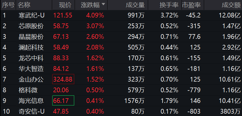 科创板50ETF(588080)紧密跟踪上证科创板50成份指数,截至2023年11月7日10:46,指数成份股中,寒武纪-U领涨4.09%,芯原股份上涨3.07%,晶晨股份、澜起科技等个股跟涨。