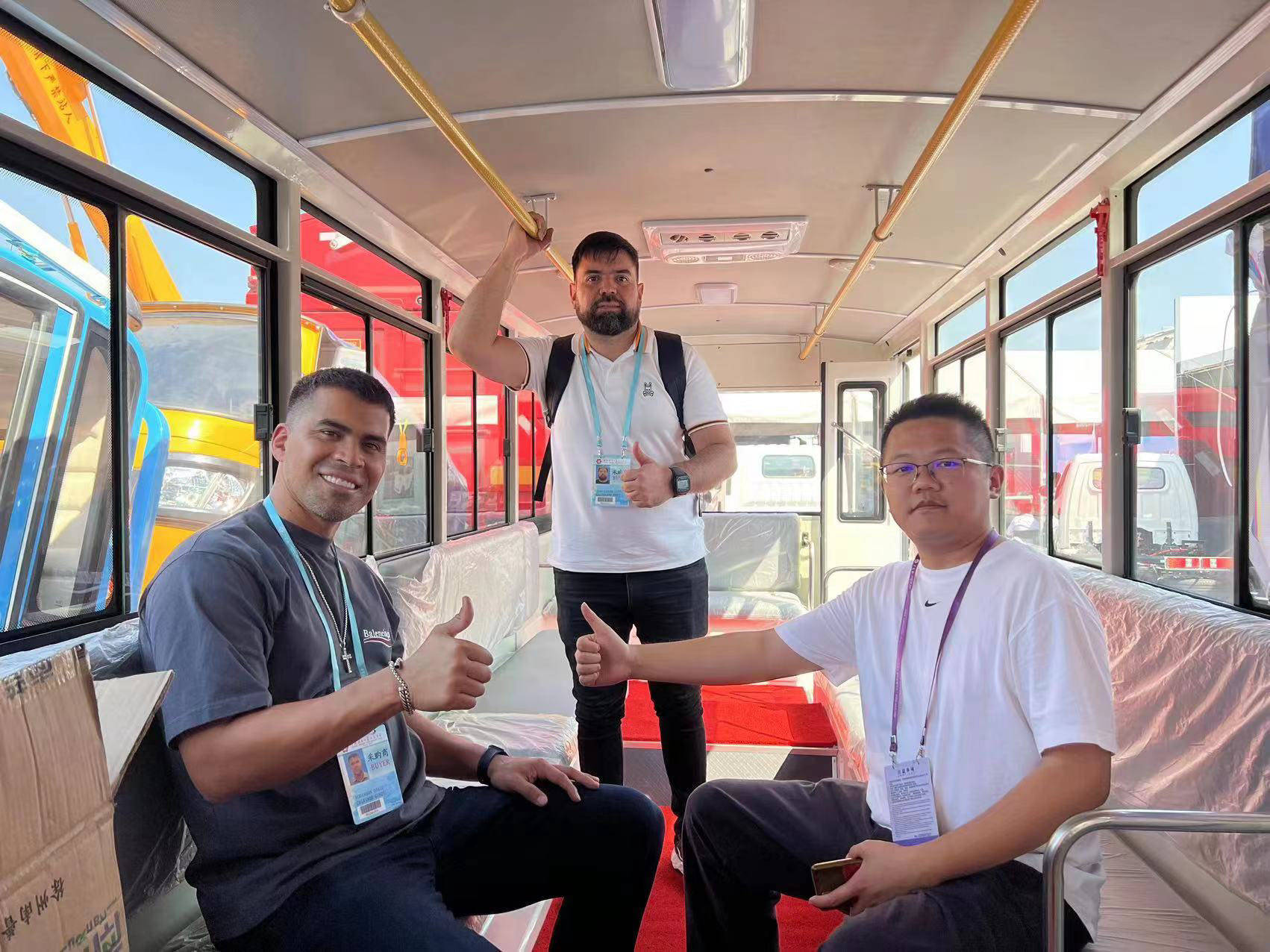 国外客商正在试乘右舵电动小巴