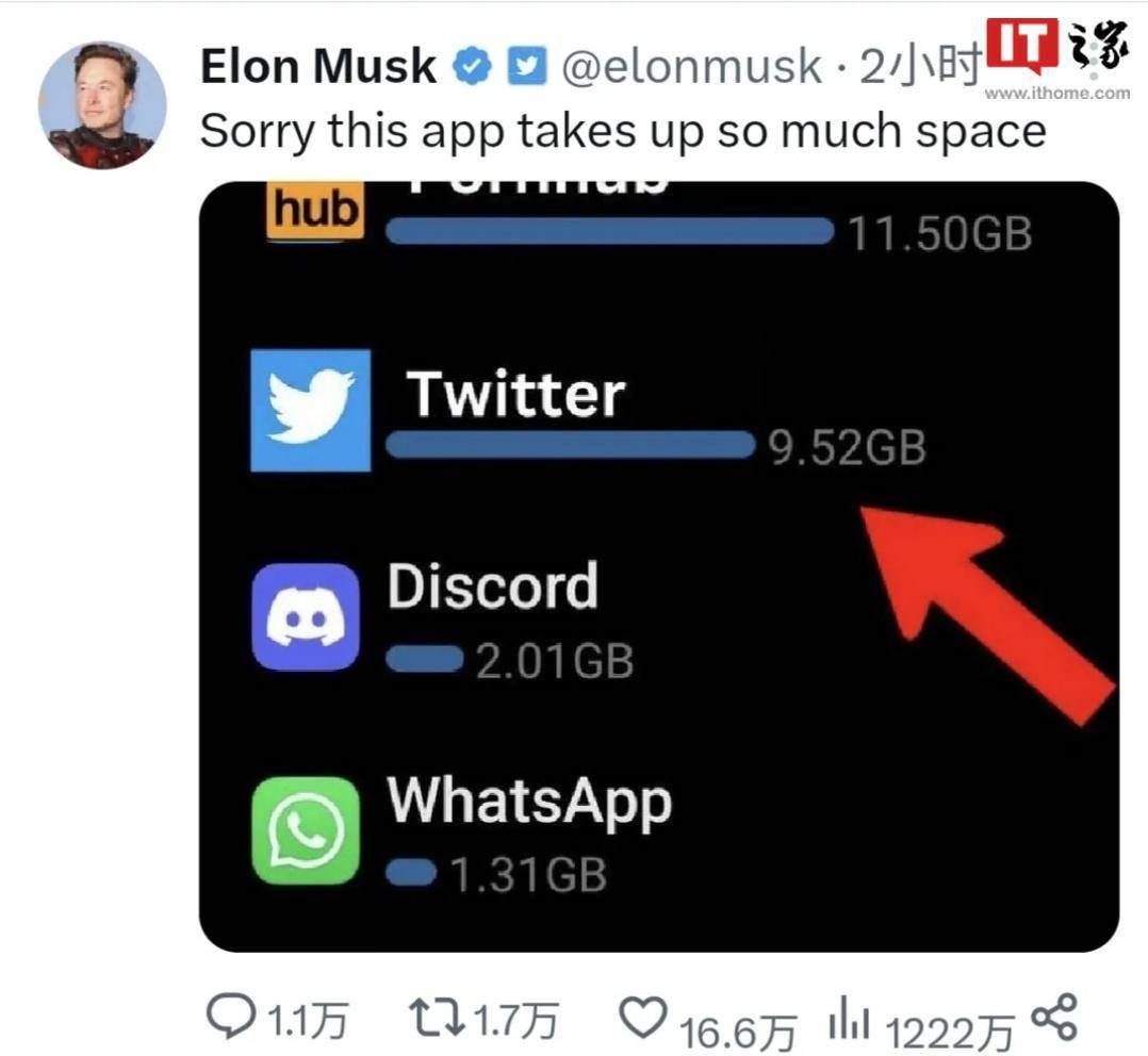 原标题:马斯克为推特App占用太多手机存储空间致歉